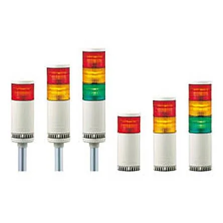 Patlite LME Series. Patlite LME series signal light towers featuring an LED light that is versatile and energy-efficient. The prism cut lenses in combination with a dual reflection system enhances the LED light diffusion to create a unique, full and brilliant light. The lenses and main body are made of strong synthetic materials with characteristics to withstand harsh environments. The LME Signal towers are available in a range of combinations from 1 to 5 LED units with any colour combination. In addition to its continuous lighting condition, the Signal Light can also be ordered with flashing / non-flashing functions. Dual reflection system for enhanced light diffusion Direct mount installation. Colour co-ordinated wiring corresponding to the lens colour for quick wiring and verification. Interchangeable Modules need no re-wiring, even after installation. Main body is constructed of ABS resin with superior resistance to impact and heat.