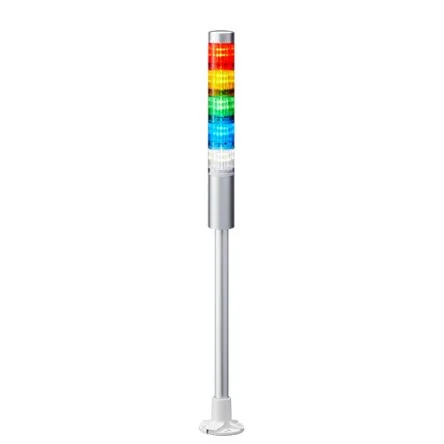Our next generation signal tower line featuring cutting-edge technology, modular segments for field configuration, and a wide-array of options to fit the most challenging applications.Re-designed lens and improved module construction delivering bright, even light for visibility from further distances. (2000mcd output) Re-engineered, completely enclosed sound module, maintaining substantial water and dust protection while producing loud, omni-directional sound. (LR5 DC12C: 80, LR4 & LR5: 85, LR6: 88, LR7: 90dB at 1m) A modular, “;Twist and Lock”;, system to easily customize and reconfigure LED and sound modules. (Field configurable) A sleek, smooth form factor and an enhanced body construction for performance in harsh environments. Available in DC24V and AC100-240V Available in Off-white and Silver bodies Four mounting options: Direct, pole with L-bracket, pole with circular bracket, and pole with folding bracket (Off-white only)