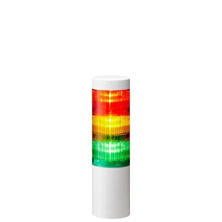 The Patlite LR6-IL IO-Link signal tower visualizes sensor information. Corresponding to the worldwide-standardized IO-Link technology, this signal tower enables you to communicate with sensors and actuators. The M12 connector makes installing and replacing easy. The visual information is customizable by choosing up to 5 LEDs in coloured LED units or one multicolour unit. With a protection rating of IP65, the LR6-IL is suitable for use in areas with splash water and dust. In addition to the visual information, a buzzer with 84 dB and 4 alarm sounds supports you in triggering the correct response in case of a detected abnormality.Features & Benefits of this IOLink signal tower: Preconfigured with 3 LEDs: Red, Amber, Green Base diameter: 60 mm White body Direct mount M12 Connector Buzzer unit with 84 dB can be purchased separately Light effect: Permanent/ Flashing