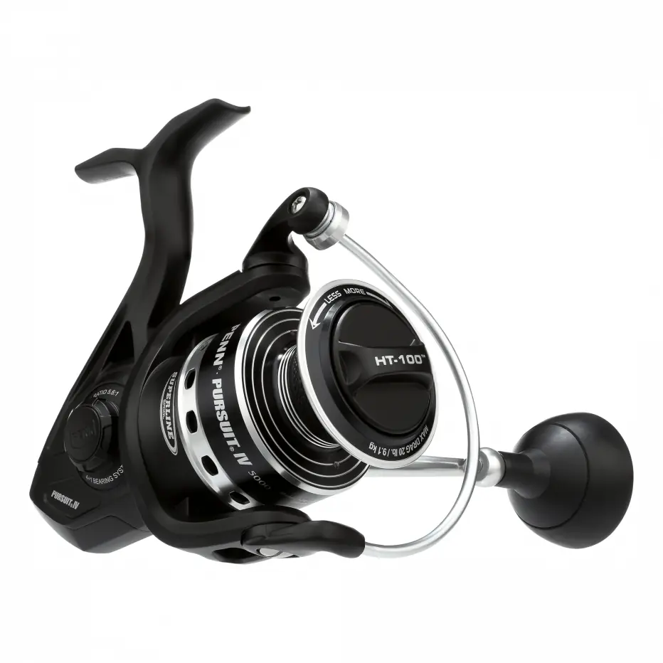 The PENN Pursuit IV Spinning Reel is engineered for durability and smooth performance, making it an excellent choice for both freshwater and saltwater anglers. Its lightweight, corrosion-resistant graphite body ensures longevity, while the HT-100â„¢ carbon fiber drag washers provide a powerful drag system. The reel features an instant anti-reverse bearing for immediate hook sets and four sealed stainless steel ball bearings for smooth retrieves. Available in sizes ranging from 2500 to 8000, the Pursuit IV caters to various fishing needs.