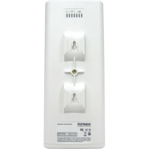 Multiple devices could connect to headquarters using both the 2.4GHz and 5 GHz frequencies coming from a single AP. This is achieved by hooking up a Device Connector IP55 to each device, and then connecting them any AP. Using this configuration, the device connector will be able to form SpeedFusion connections with the Balance Router located at the network infrastructure, providing the enhanced reliability of combined bandwidth.Plug-and-PlayEasily extend Wi-Fi coverage in minutes with Pepwave’s Device Connector IP55. The Device Connector gets your devices talking over a large area without wires or configuration headaches. And because it works transparently at Layer 2, the Device Connector is compatible with any access point.Merge 2.4GHz & 5GHz SignalsNormally, Wi-Fi devices will force you to choose between 5GHz or 2.4GHz. With the Device Connector IP55, you can have both. Simply connect your device to the Ethernet port and the device connector will combine 5GHz and 2HGz into a single reliable connection.Advanced RoamingAdvanced Roaming lets your Device Connector IP55 seamlessly hop from AP to AP in a matter of seconds. Whether you’re commanding an emergency situation, coordinating a construction project, or keeping your warehouse stocked, Advanced Roaming keeps everyone communicating at all times.Compact Super-Duty IP55 EnclosureThe Device Connector IP55 has a waterproof IP55 enclosure that stands up to dust, vibration, and inclement weather.