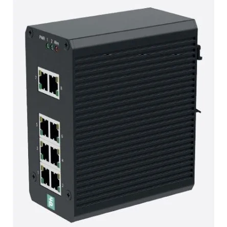 Unmanaged Ethernet switch with 8 RJ45 ports for reliable, cost-effective data transfer in rugged environments.