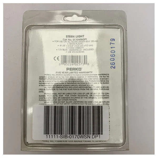 Illuminate your night-time voyages with the Perko white 12V stern navigation light (PKO170WSN100). This essential port light combines bright visibility with a robust construction, allowing you to navigate safely even in challenging conditions.