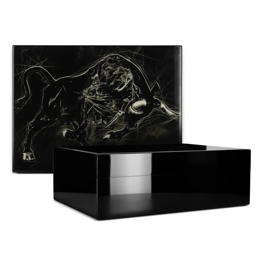 magnificent cigar humidor from the house of peter charles paris decorated by the talented photographer ifelseart. in cedar wood inside with 1 crystal humidifier 1 hygrometer and 2 separators.. limited edition numbered 1/100.. . mark. peter charles paris.