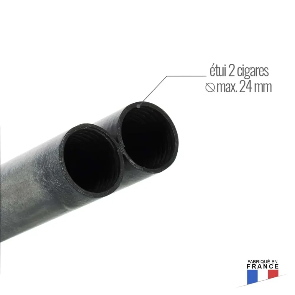 Case for 2 cigars in genuine gray leather and black plastic and for traveling with always 2 cigars on your person. Made in France for modules of cepo max 60.