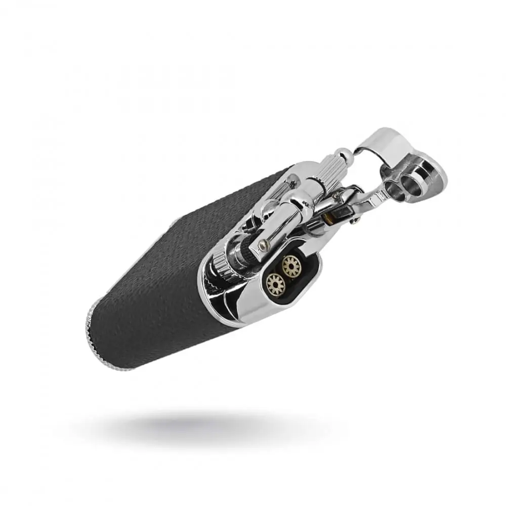 the peter charles junior leather lighter in orange brings a lively and modern touch to your accessory collection. with its double torch flame it guarantees a powerful and precise ignition even in windy conditions. this high-end model also has a practical integrated punch ideal for carefully preparing your cigars. its textured orange leather covering offers both elegance and comfort of use making this lighter an aesthetic and functional choice.