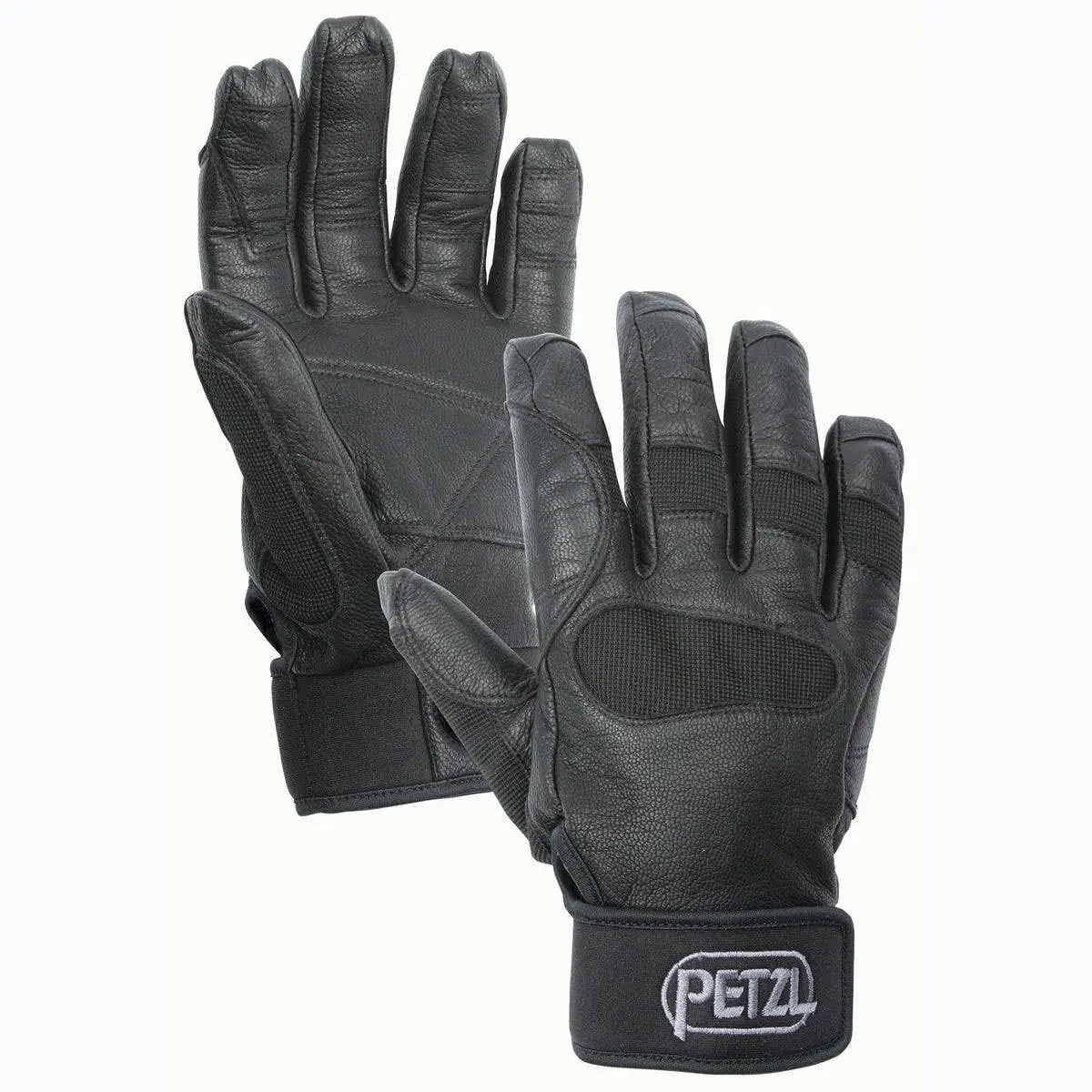 The Petzl Cordex Plus Gloves are medium-weight belay and rappel gloves designed to offer enhanced protection without compromising dexterity. They feature a double-layer of high-quality goat skin leather in high-wear areas such as the fingertips, palm, and between the thumb and index finger, providing durability and protection against heat generated during prolonged rappels or lowers. The back of the gloves is constructed from durable leather with abrasion-resistant stretch nylon at key flex areas, ensuring flexibility and comfort. A low-profile neoprene cuff with a Velcro closure secures the gloves, and a reinforced carabiner hole allows for easy attachment to a harness.