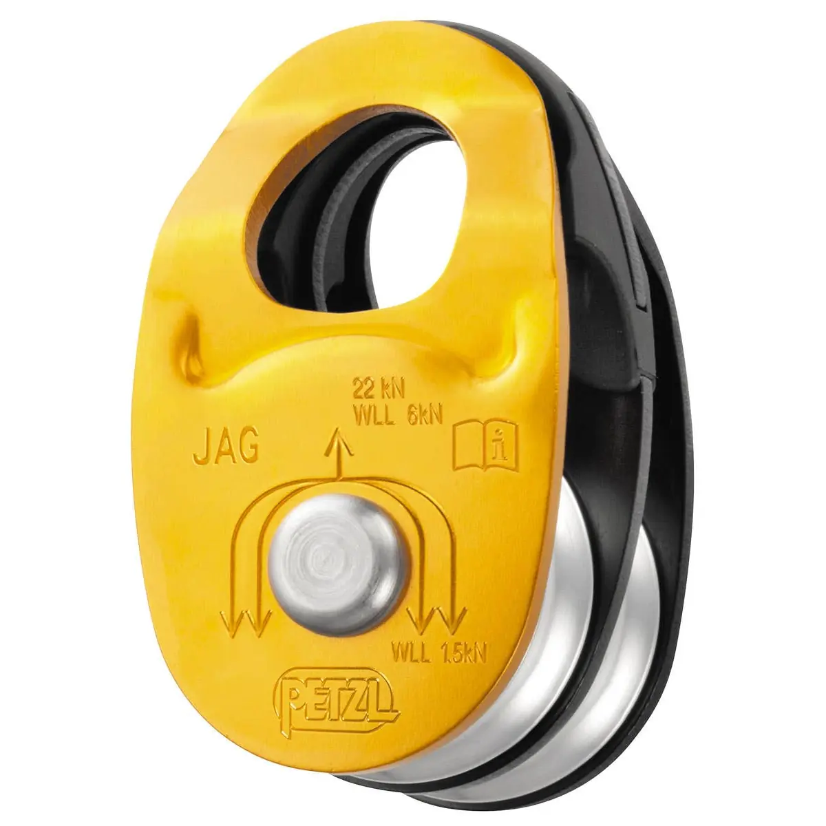 The Petzl JAG High-Efficiency Double Pulley is engineered to work seamlessly with the JAG TRAXION double progress capture pulley, forming a 4:1 haul system. This configuration is ideal for applications requiring efficient load management and mechanical advantage.