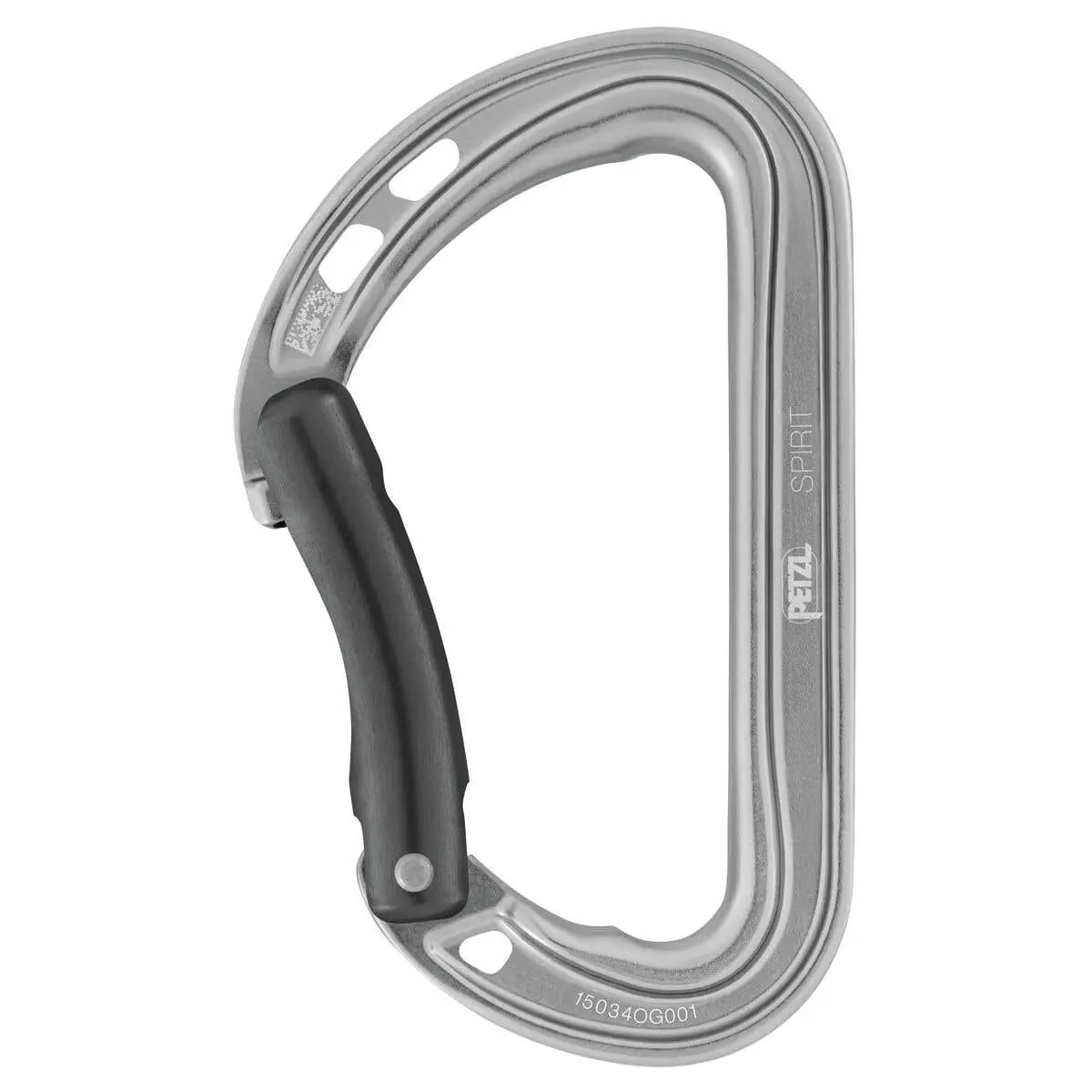 The Petzl SPIRIT Curved Carabiner is a versatile, lightweight non-locking carabiner designed for sport climbing and various vertical rope activities such as canyoning and caving. Its ergonomic curved finger design with small flats optimizes handling and rope clipping. Equipped with the Keylock system, it prevents snagging during clipping and unclipping, enhancing fluidity. With an excellent weight-to-performance ratio, the SPIRIT Curved Carabiner is indispensable for activities like mountaineering, multi-pitch climbing, sport routes, ice climbing, canyoning, and caving. Manufactured in accordance with CE regulation 2016/425 for PPE (category 3) and standards EN 12275: 2013; UIAA 121: 2018.