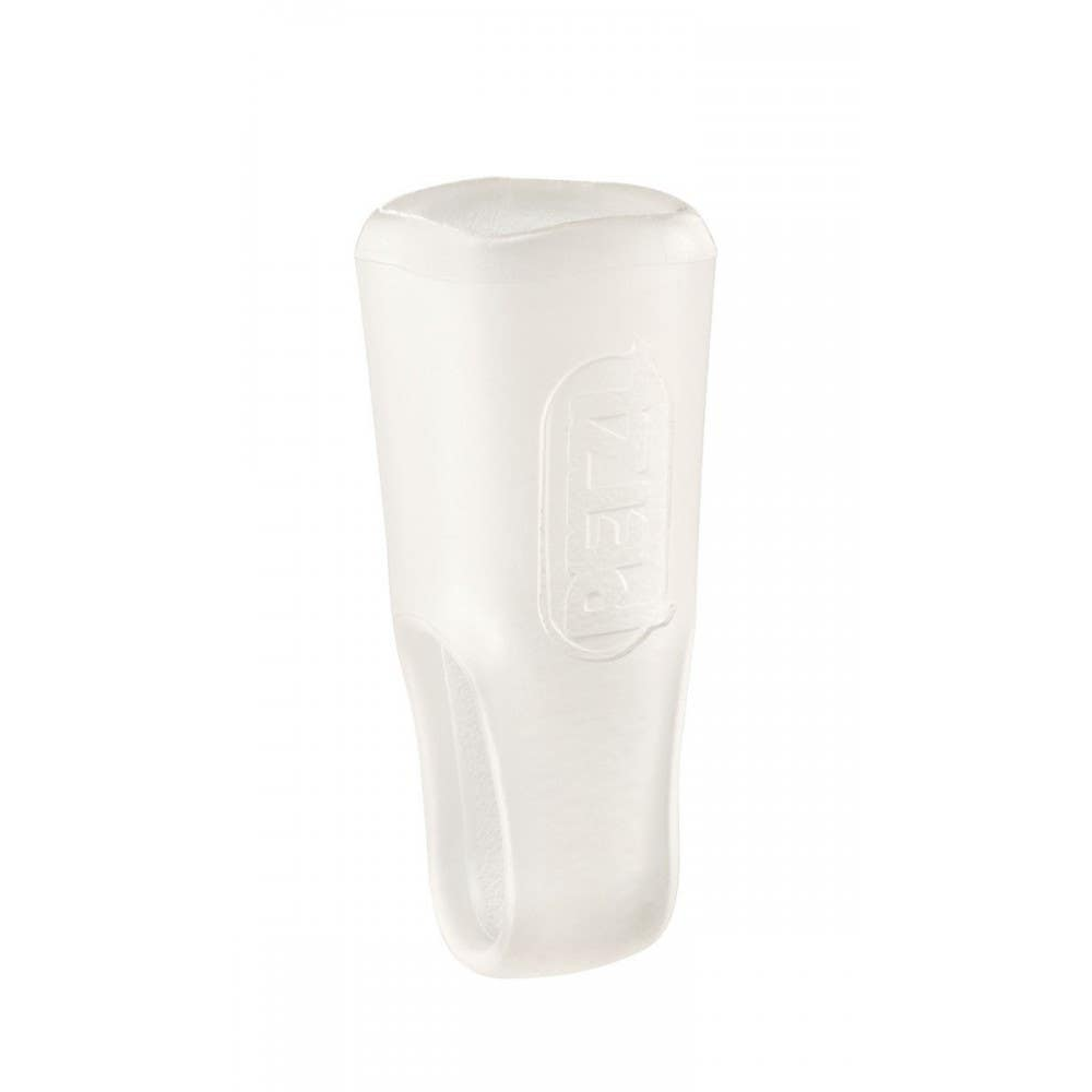 The Petzl STRING M is an accessory designed to maintain the proper orientation of connectors and protect the carabiner attachment loop from wear. Sold in a pack of 10, it is compatible with webbing 15 to 20 mm wide. The transparent design allows for easy inspection of the carabiner's placement within the strap.