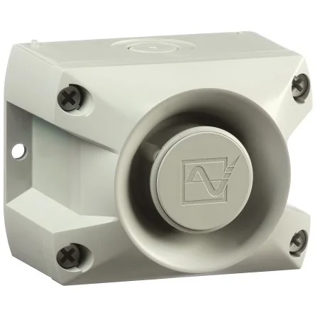High-efficiency electronic sounder with 100 dB output and 80 alarm tones for reliable signaling.