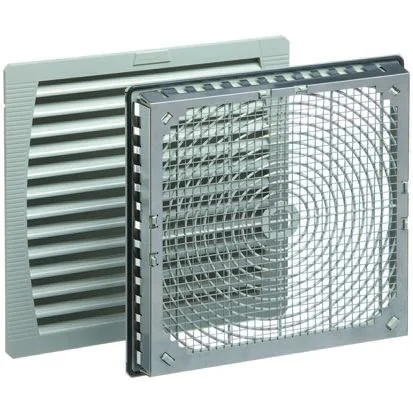 UL, GOST. For IP54 and IP55 fans the cut out tolerance is 0 to 1mm where panel thickness is less than 2mm and +1 to +2mm where panel thickness is greater than 2mm and less than 3mm. For EMC-shielded fans the tolerance is +/- 0.5mm where panel thickness is less than 3mm. Pfannenberg's latest 4th Generation high air flow snap filter fans and filters are designed to fit the same apertures as Pfannenberg's 3rd Generation fans and filters. Pfannenberg 4th Generation High Air Flow Filter Fans. The filter fan has a new-to-the-market pleated fabric filter and louvre design that gives a high airflow at IP55. Its unique, patented water and dust pre-separation in the lamellas ensures that the majority of water and dust never reach the filter mat, extending its lifetime and therefore reducing the maintenance requirements. The "Click and Fit" design eliminates the need for fixings, providing hardware-free installation and filter mat changing, giving a unique user-friendly product. The new filterfan generation comprises IP54 variants, which filter to the improved G3 specification, and IP55 versions capable of G4 level filtration, with EMC versions of both. It features a new, patented 4-corner locking / fastening system; the terminal is of a cage clamp design and its position is changeable through 90° step turns to accommodate differing wiring directions. The units in the range are completely reversible to either introduce or extract air from the enclosure. Provision is made for mounting a thermostat on the rear face of all exhaust filters to reduce energy consumption. IP55 variants are also UV stable and suitable for use in outdoor applications without any extra protection. The cutouts are compatible with the previous generation and with those used by major competitors. Features and Benefits. Extremely high air flow (highest in the market) Reversibility Click and fit design High filter life Fully certified 25 design patents Colour: RAL 7035 (except Manu Part No suffix 50 : RAL 9011 / Black) Manu Part No prefix "PFA" indicates a snap fit exhaust filter Manu Part No suffices 1055 ; 2055 indicate IP54, suffix 3055 indicates IP55