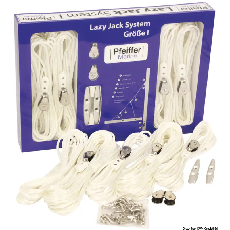 The PFEIFFER Lazy Jack kit by Osculati is designed for efficient sail handling.
