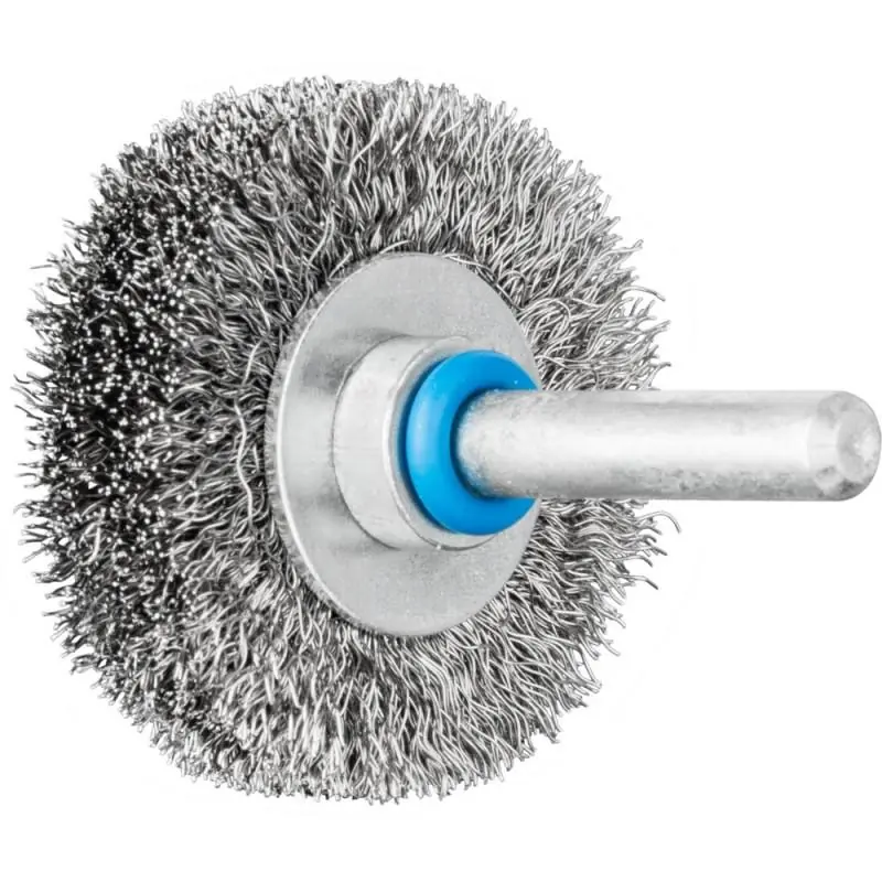 The PFERD RBU 40/09 Stainless Steel Wire Wheel Brush is designed for versatile applications, including cleaning, derusting, smoothing, polishing weld seams, light deburring, and removing corrosion and paint. This brush is particularly effective on stainless steel (INOX) surfaces, utilizing wire quality 1.4310 (V2A) to ensure excellent corrosion resistance and optimal tool life. All PFERD brushes with INOX filaments are color-coded in blue and are suitable for use on all stainless steels (INOX), such as V4A. The wire quality 1.4310 tends to become ferromagnetic when cold-hardened, meaning it can be attracted to magnets. This change in structure does not affect the quality or corrosion resistance of the INOX filament, which remains resistant to corrosion. Stainless steel wire (INOX) withstands temperatures up to 450 °C.