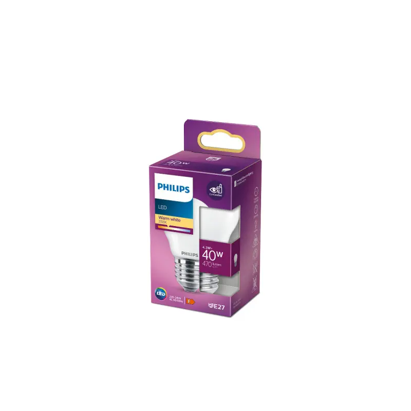 PHILIPS spherical LED bulb - EyeComfort - 4 3W - 470 lumens - 2700K - E27 - 93013 with a contemporary style, it is ideal for replacing traditional incandescent bulbs in decorative fixtures such as chandeliers or floor lamps. Thanks to LED technology, the bulb uses about 85% less energy and lasts ten times longer than traditional bulbs. Now you can comfortably light your home with LEDs designed for eye comfort(see the attached EyeComfort document below) and thus create the perfect atmosphere for your home.