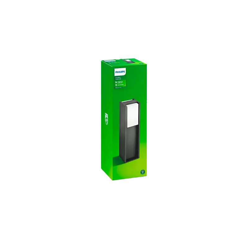 PHILIPS Outdoor Light Post - 40cm - 14W - 810 lumens - 2700K - 93524 with a contemporary design and anthracite colour, it is discreet and elegant. Designed to illuminate your garages, trees, lawns, paths, and terraces, it diffuses a warm white light ideal for cosy evenings. Its LED lighting allows for up to 80% energy savings and multiplies the lifespan of the bulb.