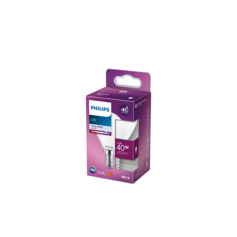 PHILIPS Spherical LED Bulb - EyeComfort - 4 3W - 470 lumens - 2700K - E14 - 93012 with its modern yet traditional design is ideal for replacing traditional incandescent bulbs in decorative fixtures such as chandeliers or floor lamps. Thanks to LED technology, the bulb uses about 85% less energy and lasts ten times longer than traditional bulbs. Now you can comfortably light your home with LEDs designed for eye comfort(see the attached EyeComfort document below) and thus create the perfect atmosphere for your home.