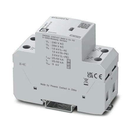 Phoenix Contact 1 Phase Surge Arrester, 25kA, 264V ac, DIN Rail Mount - 1461299