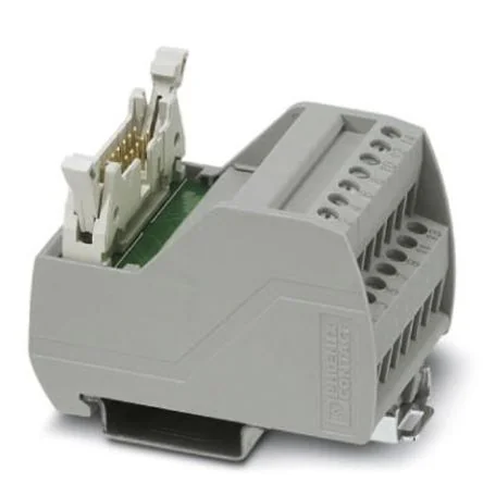 Phoenix Contact D-sub interface module VIP VARIOFACE. The VIP VARIOFACE D-sub interface modules from Phoenix Contact are dIN rail mounted, plug-in D-sub modules that are designed to be slotted onto an NS35 rail. These interface modules have a 1:1 connection, feature screw connection terminal blocks and not to mention, adhere to the standard IEC 60603-13. The VIP VARIOFACE devices come in a variety of positions from 9 up to 50 to suit all your needs. This VIP VARIOFACE module will allow you to connect to your other Phoenix Contact peripherals such as high pos connectors from the VIP ; UMK range while also allowing effortless connection to FMK, FLMK and similar cabinet wiring technologies. Features and benefits:. ;ul> ;li>D-sub units transfer 2.5 A/125 V AC/DC ;/li> ;li>Metal footing to ensure reliability over time and optimum safety ;/li> ;li>IEC 60603-13 standard ;/li> ;li>Screw connection providing a super-secure and reliable connection. ;/li> ;/ul>. Complete Line:. The VIP VARIOFACE series is apart of Phoenix Contacts vast and comprehensive portfolio. Complete line is a solution from Phoenix Contact that gives you a full range of products that all go hand-in-hand to make a perfect control cabinet. It covers all bases from connections, switching and measuring all the way to controlling, supplying and automation. Choosing complete line products makes it far more efficient to get a cabinet working.