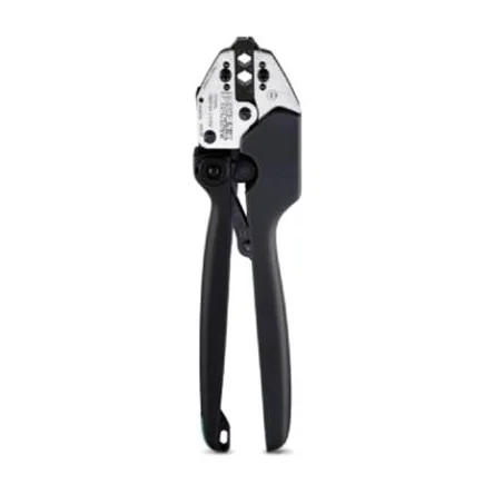 Precision hand crimp tool for coaxial connectors, ensuring reliable and efficient crimping.