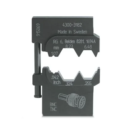 Precision crimp die for coaxial connections, ensuring reliable performance.