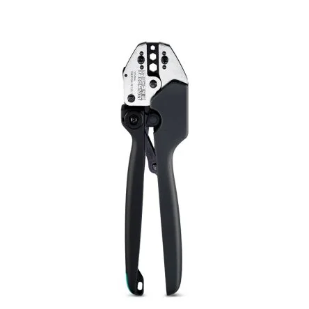 Phoenix Contact CRIMPFOX Hand Crimping Tool for Cable Lugs, 10 mm² to 25 mm² - CRIMPFOX-RCT 25-1 - 1212066 This Phoenix Contact hand crimping tool lets you set up electrical connections between wires, cables and components. Its specifically designed for non-insulated tubular cable lugs, and you can use it to deform contacts in order to complete a circuit. The tool has three crimping positions which are used to securely crimp contacts with wire diameter cross-sections of 10 mm², 16 mm² and 25 mm². These pliers also feature durable ergonomic handles that offer a firm grip and can be used comfortably and safely for extended periods. This easy-to-use tool reduces the amount of crimping force required from your hand by up to 25%. This you wont suffer muscle fatigue when youre working on big jobs. Youll find crimping pliers like this used in a variety of electrical applications, including automotive repair, power grid maintenance and industrial manufacturing.• Dimensions of 256 (length) x 25 (width) x 68 mm (height) • Weight of 661.6 g • Black handle colour • Hex crimp • American Wire Gauge (AWG) of 8