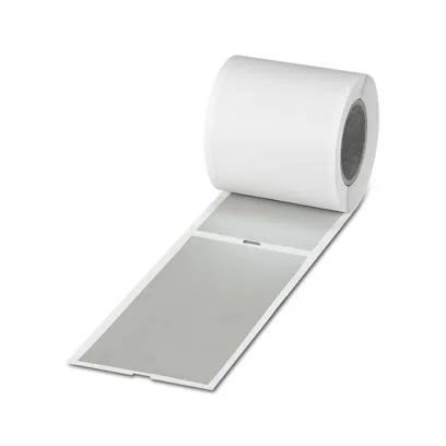 High-quality silver labels from Phoenix Contact, 150mm wide and 70mm high, with 100 labels per roll.