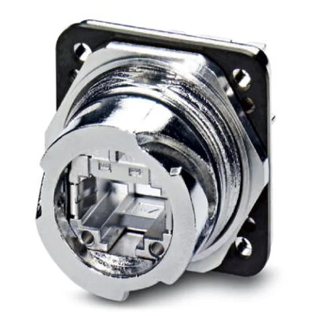 Metal Bayonet Interlocking Panel Mount Frames. From Phoenix Contact, a series of panel mount frames for bayonet interlocking. These RJ45 panel mount frames have socket-socket contact inserts or contact insert for cable mounting. The panel mount frames are manufactured from diecast zinc and have a round panel cut out. They are supplied without mounting screws.