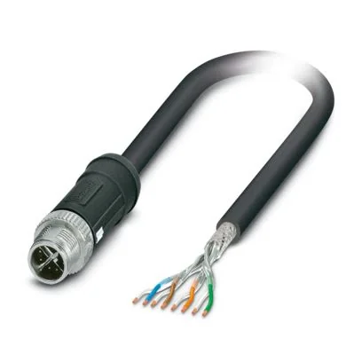 Phoenix Contact1415600, 5m Cat6a, Black M12 to Male Free Ends, Shielded Shielded, Terminated Polyethylene Sheath