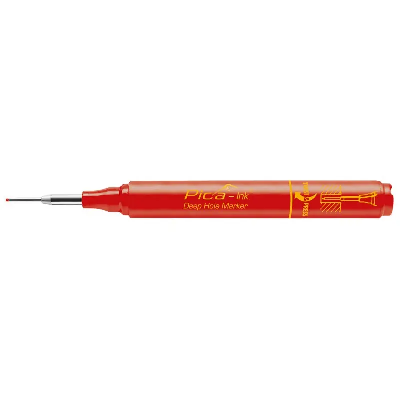 The Pica Ink Deep Hole Marker is designed for precise marking in hard-to-reach areas, making it ideal for deep drill holes and tight spaces. Its 1.5 mm bullet tip ensures accurate lines on various dry surfaces.