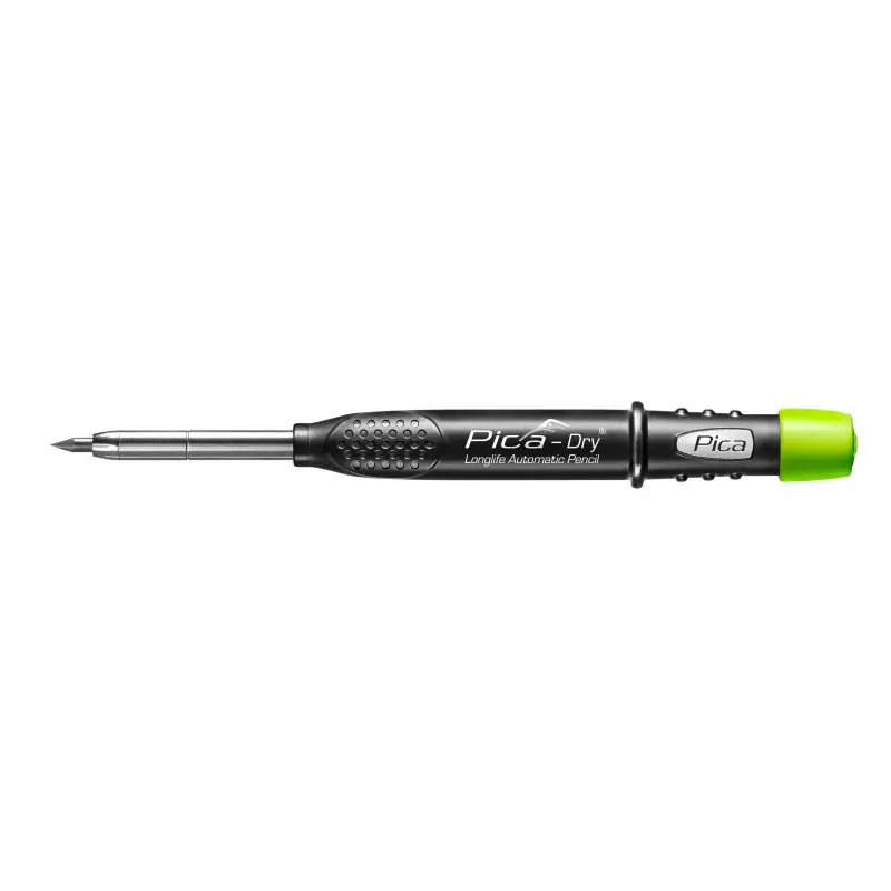 The Pica-Dry Longlife Automatic Pencil is a professional-grade construction marker designed for durability and versatility on various surfaces. Its unique features make it an essential tool for craftsmen and professionals.