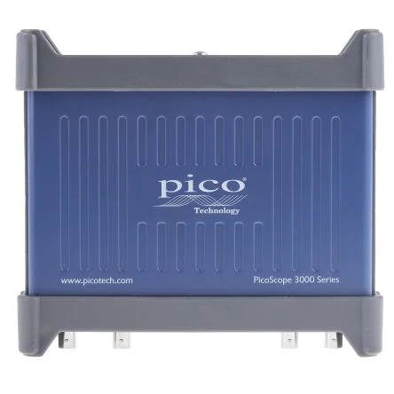 Pico Technology OscilloscopesThe Pico Technology 3000 series has a bandwidth of 50MHz. It is a 4-channel PC based, compact, USB-connected complete portable test system, which plugs into a laptop. It is compatible with PicoScope6 software to offer advanced and cost-effective solutions. This oscilloscope displays waveforms in a resizable window on the users PC screen, creating an uncluttered space for multiple high-resolution analogues and digital traces. Saving, sharing and analysing waveforms is quick and simple using PC networking, storage and processing facilities. It also includes math channels, automatic measurements with statistics, spectrum analysis and colour persistence display mode and has built-in advanced digital triggering with pulse width, window, dropout, channel logic, digital pattern and other qualifiers, masks limit testing and alarms. Serial decoding supports SPI, I2C, I2S, RS-232/UART, CAN, LIN and FlexRay protocols on up to 20 analogue and digital channels, even with a mixture of protocols at the same time. Supplied with: Switchable x1/x10 probes (1 per analogue channel) in carrying case, Quick Start guide, software and reference CD, USB cables, power adaptor (with 4 analogue channel models only) .Features and Benefits1GS/s real-time sampling 512MS buffer memory 100,000 waveforms per second Arbitrary waveform generator USB 3.0 connected and powered Serial decoding and mask testing as standard Hardware-accelerated update ratesApplicationsDesign Test Education Servicing Monitoring Fault finding RepairsCertificationsEN 61010-1:2010 WEEE certified EN61326-1:2006 FCC Part 15 Subpart B