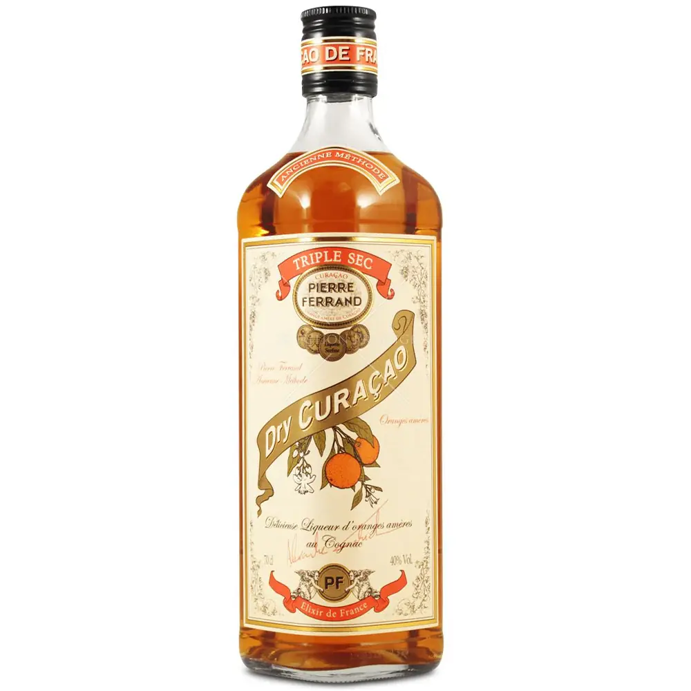 Enjoy Pierre Ferrand Dry Curaçao, a premium triple sec ideal for enhancing your cocktails.