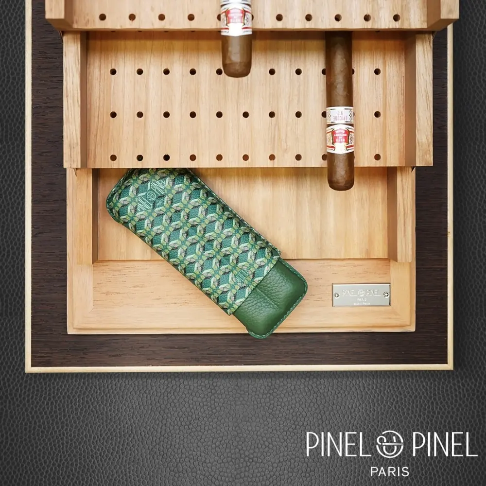 By lifting the lid of this cigar box, three trays will appear to you at the same time as all your cigars which you will have previously arranged by size, country of origin, etc. Able to accommodate, store, and preserve from 69 to 145 modules, the Pinel and Pinel wengué cigar cellar will satisfy you. It was imagined and created by Fred Pinel to meet the expectations of all aficionados. The interior of the cellar, made of cedar wood, allows the natural conservation of cigars. This is obviously complemented by a humidifier and a hygrometer from the French brand Crédo. These accessories will help you preserve your precious modules with ease and efficiency.