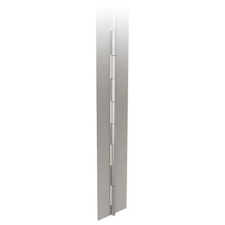 Pinet Piano Style Hinge, Stainless Steel. From Pinet, this continuous hinge has a rolled knuckle. Constructed entirely from stainless steel, this piano style hinge is durable and robust.