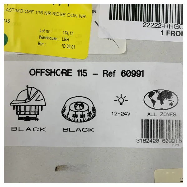 This Offshore 115 compass (model 60991) is suitable for sailing boats and motorboats from 8 to 12 meters. It features a conical card with a dial diameter of 101 mm. The graduation is in 5 degrees and the visible scale is 45 degrees. The colour of the housing is black and the compass is suitable for horizontal mounting. The lighting operates on 12/24V LED. The total mounting diameter is 115 mm with a depth of 68 mm. The compass is fully waterproof and is designed to maintain a stable reading, even under heavy vibrations or a tilt of the boat.