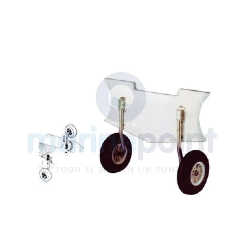 Made of AISI-316 stainless steel. Rubber wheels of Ø 360 mm. Mounting support for the stern mirror that allows them to be raised and kept steady while sailing.