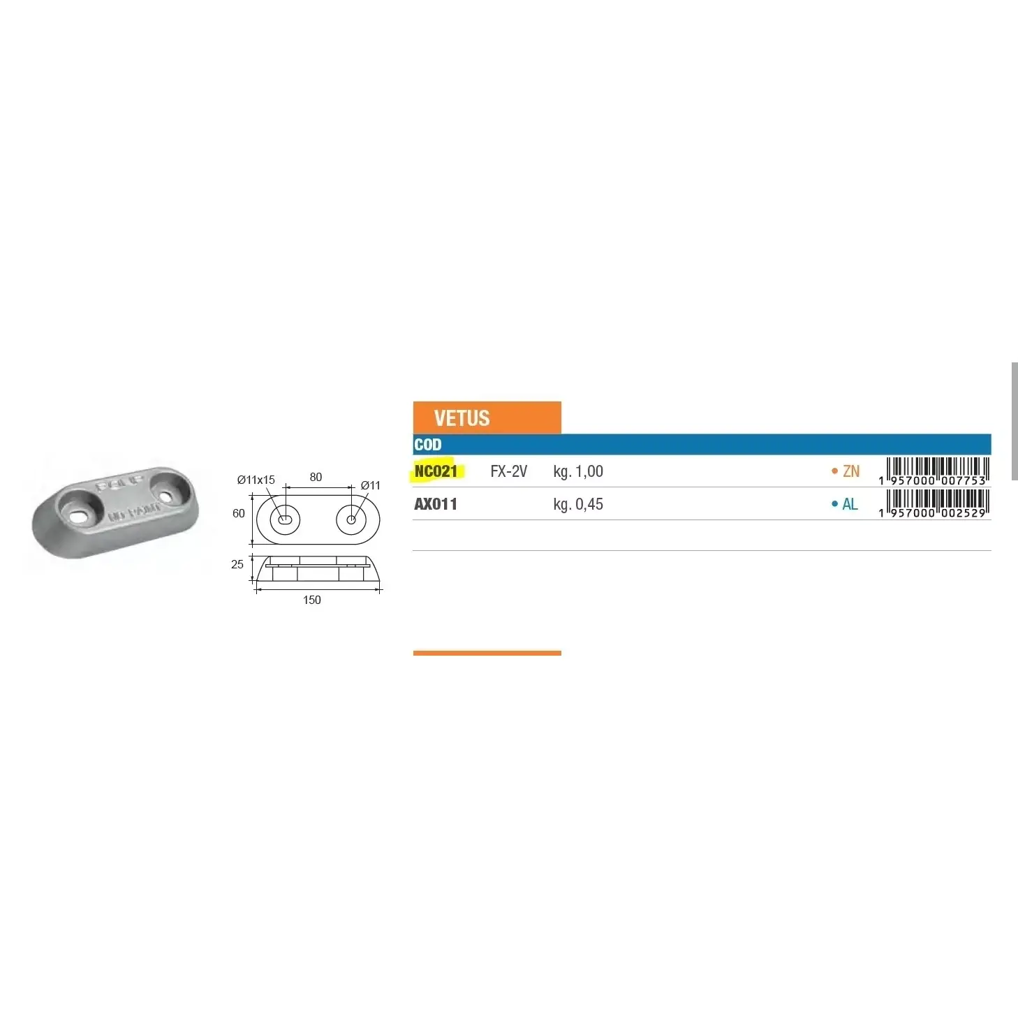 FLAPS AND RUDDERS ANODES VETUS NC021
