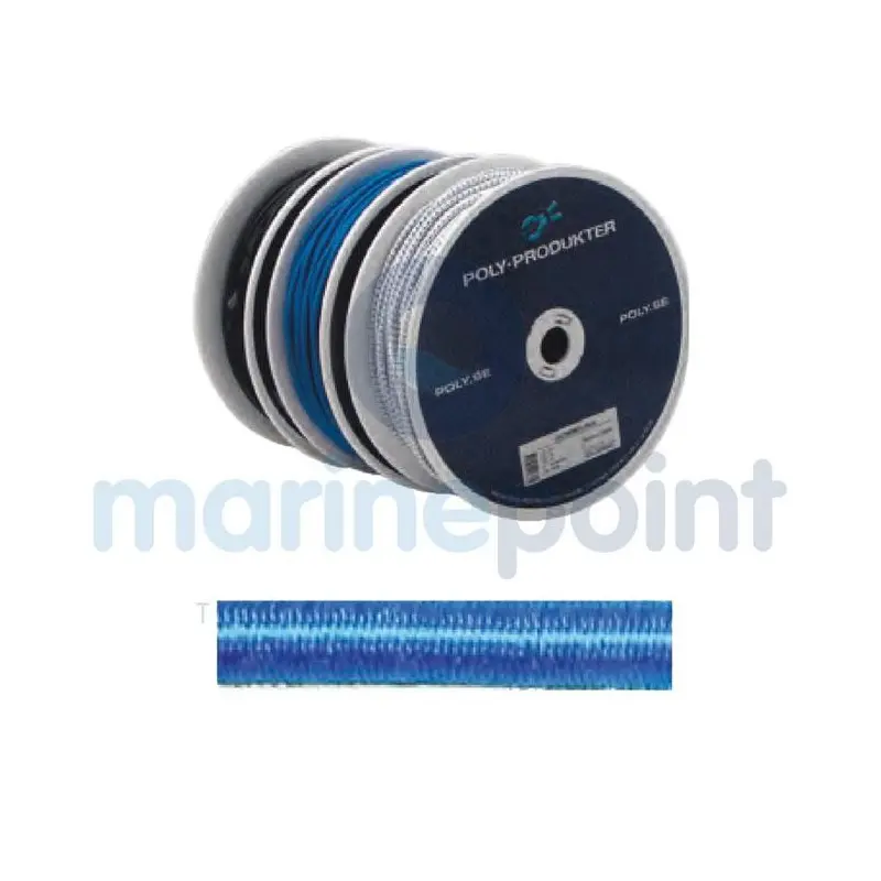 The 5mm elastic shock cord consists of a natural rubber (latex) inner core protected by a blue nylon braided cover. This combination provides great elongation capacity, strength, and durability, perfectly suited for demanding marine environments.