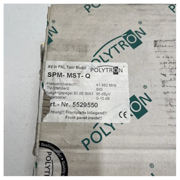 Polytron Twin Modulator SPM-MSTQ AV In: Product Description The Polytron SPM-MSTQ AV In is a modulator that combines two AV signals and converts them into a coaxial signal. This allows two audiovisual sources, such as a DVD player and a game console, to be connected to a single antenna input. The modulator is suitable for PAL television systems and has a frequency range of 47 to 862 MHz. Features: Combines two AV signals into one coaxial signal Suitable for PAL television systems Frequency range: 47 to 862 MHz Inputs: 2x RCA (composite video + audio) Output: 1x coaxial (RF) Power supply: 230V AC Specifications: Modulator type: Twin Video modulation: AM Audio modulation: FM Signal-to-noise ratio: > 50 dB Image resolution: 720 x 576 (PAL) Output level: 85 dBμV Dimensions: 110 x 70 x 25 mm Weight: 200 g Applications: Connecting two AV sources to one antenna input Distribution of AV signals to multiple televisions Use in hotels, schools, hospitals, and other institutions The Polytron SPM-MSTQ AV In is a user-friendly and reliable modulator that is ideal for connecting two AV sources to one antenna input. Additional information: The modulator is equipped with a switch to select the desired output frequency. The modulator has an LED indicator that displays the power supply and signal level. The modulator comes with a power cord and a user manual.