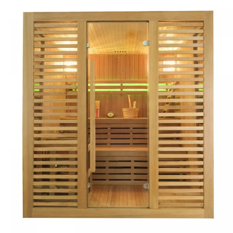 - Authentic Design: Equipped with large glazed surfaces and real solid wood louvers, the Venetian sauna allows for privacy without the feeling of confinement, creating a bright and calming atmosphere.