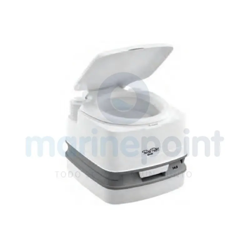 Portable toilet with a hermetic tank.Removable seat and lid for easy cleaning.With a piston pump to clean the bowl.White colour.With level indicator and anchoring kit