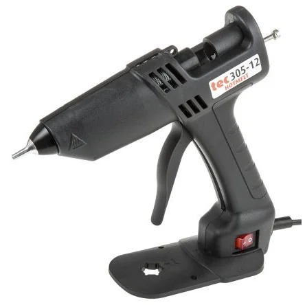 Lightweight professional Glue Gun TEC305-12. The Tec 305 is a lightweight and professional glue gun. High quality, self-regulating heaters control the glue gun temperature and is designed to provide years of trouble free service. Glue Gun TEC305-12 Reaches full operating temperature in just 5 minutes Glue output of over 750 grams (1 lbs) per hour With eco efficient self regulating 20W (150W) heaters Illuminated ON/OFF switch To use with 12 mm ( ) tecbond high performance hotmelt glue sticks (RS stock no. ; 484-9900 484-9900 )