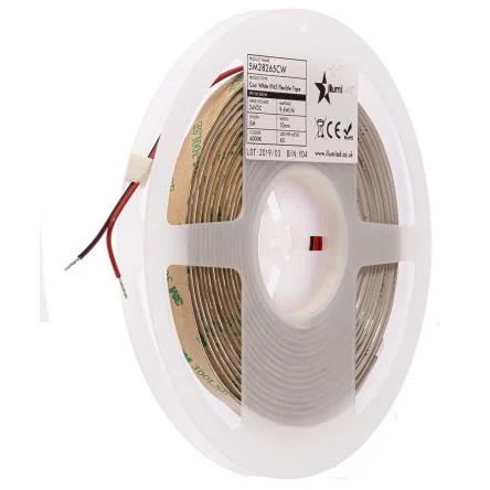 PowerLED Contractor LED KitThe PowerLED 24V, contractor LED kit is a single colour flexible tape available in cool white. It comes with 3M ultra-adhesive backing for easy installation. This strip has a length of 5m and width of 5mm.Features and Benefits• 60 LEDs per metre • 800 lumens per metre • Beam angle is 120° • Colour temperature is 6000K • CRI is greater than 80 • High power output of 9.6W per metre • LED driver required for use with this reel • Long life up to 30,000 hours • Lumens is 4000 • Mini in-line dimmer controller available • The strip can be cut every 100mm • Wattage is 48WApplications• Commercial internal or external lighting applications • Domestic internal or external lighting applications • Retail internal or external lighting applicationsCertifications• IP65 rated