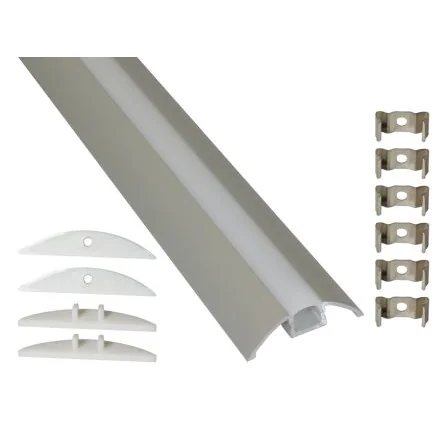 EXT8 is a Surface Mounted Flexi Strip Aluminium Extrusion, with low 7mm profile, packaged as a kit of 1 metre of aluminium extrusion, 1 clear diffuser, 1 opal diffuser, 4 end caps and 6 mounting clips. Our aluminium extrusions are a high quality anodised aluminium that can be cut to length, used individually or linked together to create endless installation ideasEXT8 - Surface Mounted Flexi Strip Aluminium Extrusion Easily transportable 1 meter lengths High quality anodised aluminium Added thermal management of LEDs Clear & Opal diffuser in every pack for added choice Link them together to create endless installation ideas Steel or plastic clips for secure installation Applications Shelve lighting Under cabinet lighting Cove lighting Skirting board lighting