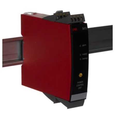9410 Series - Power Control Unit. PR Electronics 9410 power control unit distributes supply voltage to a power rail, while also detecting errors from any of the devices mounted on the power rail. A collective alarm transmits device status to the control system via the internal status relay. Redundant supply for the power rail can be obtained by mounting two 9410 devices connected to 2 separate power supplies (e.g. PR 9420). Features and Benefits. Distributes supply voltage to the power rail Optional connection of backup supply Approved for installation in I.S. / Ex zone 2 / Div. 2 Optional redundant supply for the power rail Must be installed on power rail, PR type 9400 (e.g. stock-no. ; 827-5381 827-5381 )