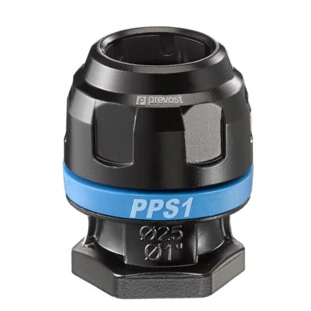 PREVOST PIPING SYSTEM100 % aluminium -The PREVOST PIPING SYSTEM compressed air network range is compact, lightweight and corrosive resistant with all aluminium fittings. The systems installation is quick and easy, then can be pressurized immediately. -Pipes are firmly held in the fitting using the PPS Grip Concept. This new concept is based on a stainless steel ring with teeth that penetrate the aluminium. The new contoured and lubricated seal design guarantees a leak free performance.