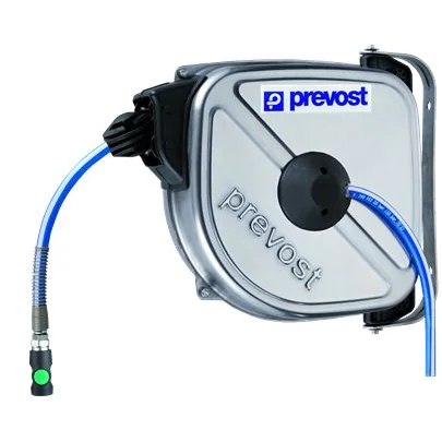 PREVOST Wall Mounted 12m Air Hose Reel, 10mm Inner Diameter, 14mm Outer Diameter, 800L/min Flow Rate - DRFI 1012ESHE