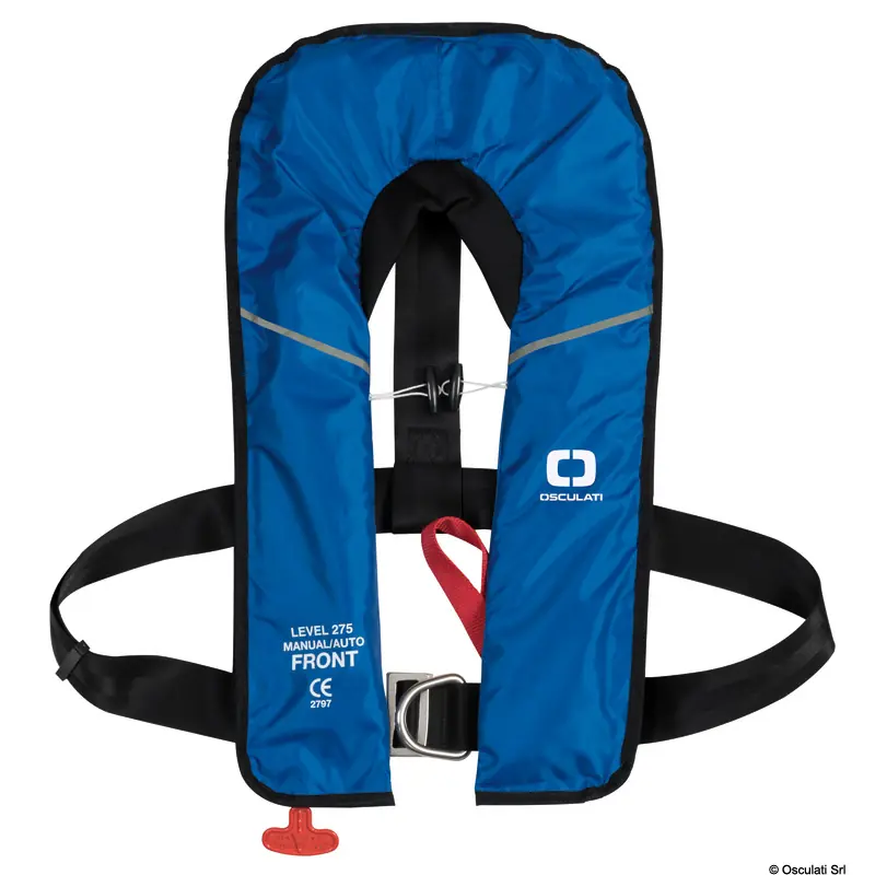 The Osculati 275MA self-inflatable lifejacket ensures safety and compliance with EN ISO 12402-2 standards.
