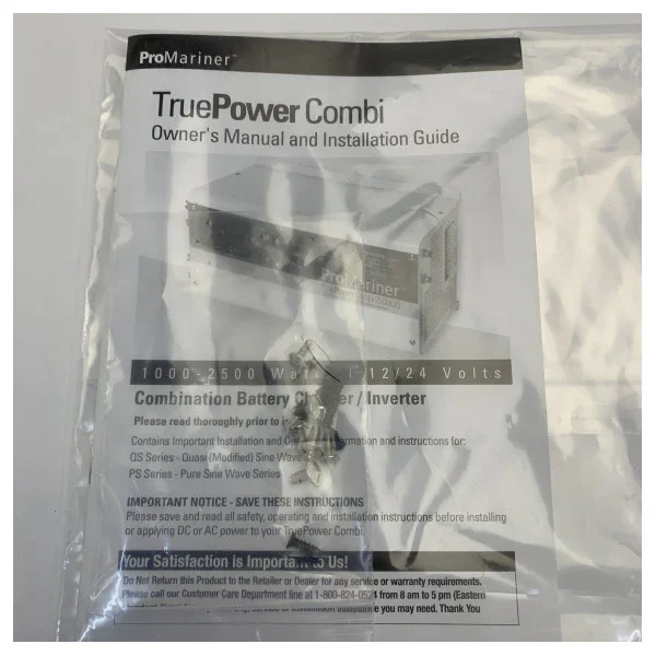 Are you looking for a powerful and reliable all-in-one solution for power supply on board or remotely? The Promariner Truepower Combi 2500QS is an advanced inverter/charger combination designed for the most demanding applications. With a continuous power of 2500 Watts and a peak power of 5000 Watts, this device can effortlessly supply heavy equipment with pure sine wave power. This guarantees safe operation of sensitive electronics such as laptops, televisions, and medical equipment.